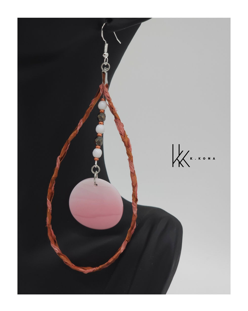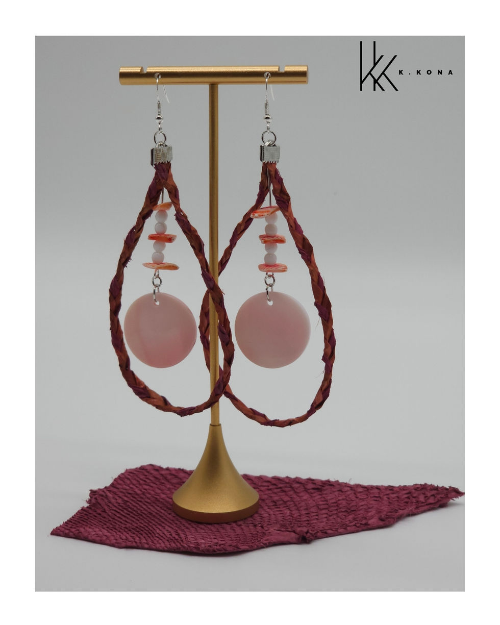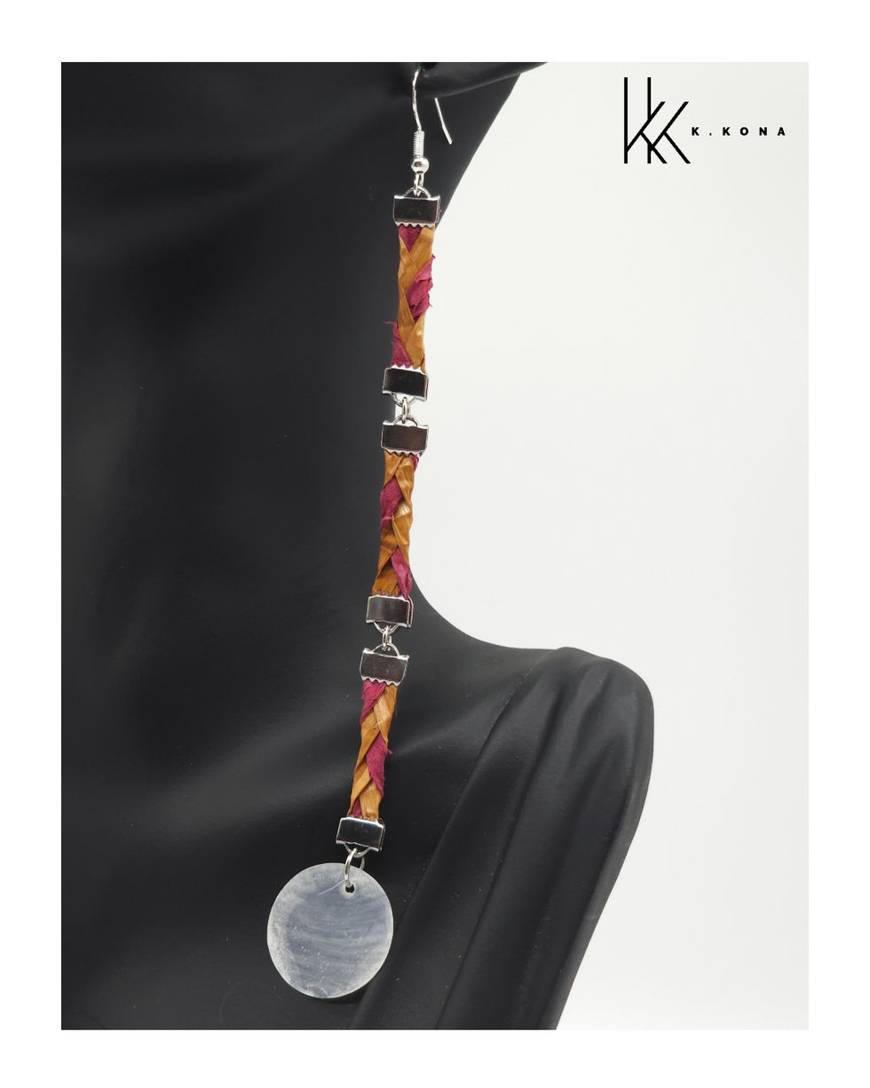 This collection is made out of dyed pink cedar weaved with pink salmon skin leather and an array of pendants, mostly using conch shells.
